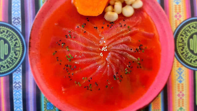 Pisco, aji, sumo de tomate e molho especial