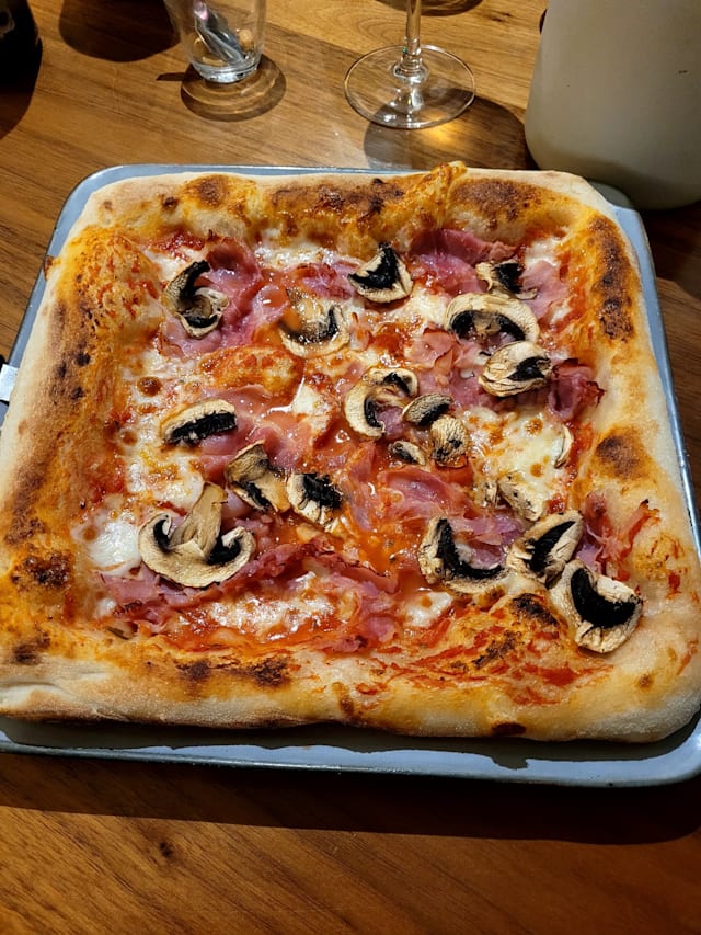 9.5/10Great Italian restaurant, great pizza! Our table got the pizza fritta, the vegetariana, and the lasagne. All excellent but the star is the pizza crust. It has a unique sour dough flavour. I would recommend the pizza over the pasta. Ambiance is casual, with the doors staying open and a little dog running around the restaurant. Would go again.