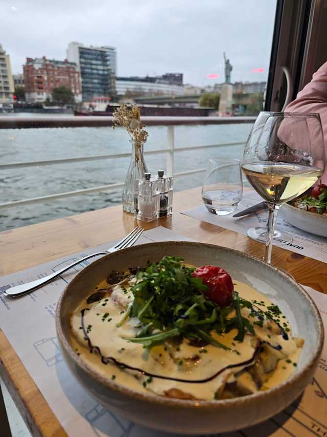 10/10Such a lovely place on the Seine River with a beautiful view. The staff was attentive and excellent. The food was classic and wonderful. The ambiance of the boat combined with the excellent food made for a perfect evening for our family (2 adults, 1 teen, and 1 9 year old).