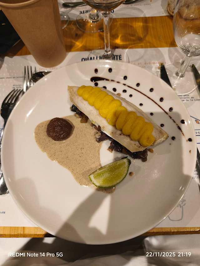 10/10Nice terrace in front of the boat to enjoy an aperitif before dinner on board. Presentation and taste of traditional dishes were very nicely surprising and the room was quiet to enjoy our dinner with friends