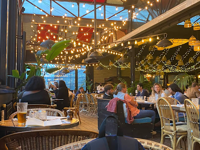 7/10The restaurant had great ambiance and atmosphere. The tables were very well spaced but the mood of the crowd filled the spaces. The main was average but the dessert was excellent. The waiter was dismissive, rude and even clicked his tongue at us. He also completely ignored out payment split. The guys who brought the food were lovely and even had a small chat with us as they brought the food. Except for the waiter. A great spot