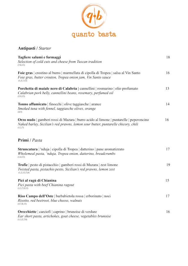 10/10Lovely small menu and charming and helpful staff - many of whom have been with Quanto Basta for a long time. Excellent wine list - try the Baldetta Chagre!