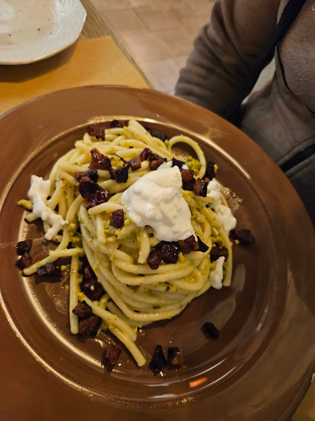 10/10One of the best pastas I’ve ever eaten. Make sure you try the pici with pistachio pesto, guanciale and burrata - yum! Great service, wine and menu. A must right behind the centre of Lucca