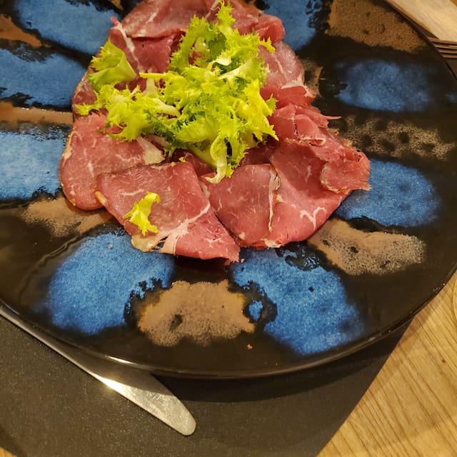 Carpaccio di manzo affumicato con insalatina verde