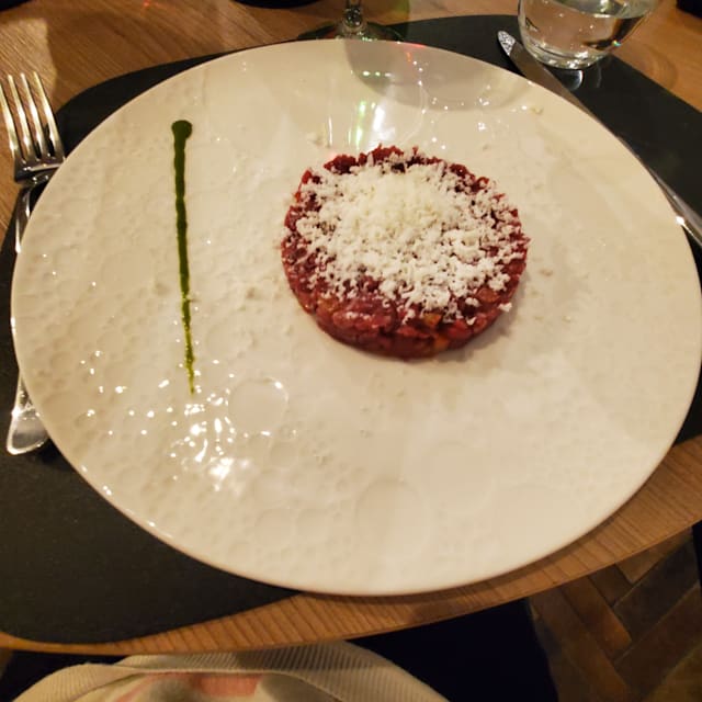 Tartare di manzo alla campana(pomodorini di Sorrento e mousse di bufala)