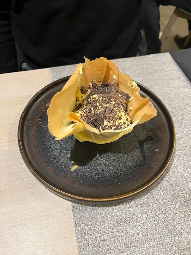 - Tortellini in cestino croccante con mousse di parmigiano