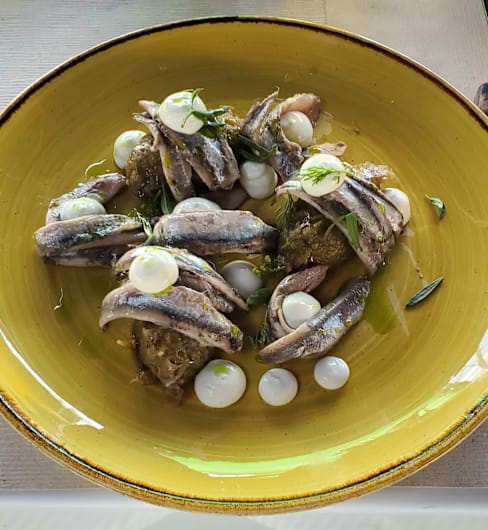 9.5/10Despite the heat, about 33°, outside was fresh and very pleasant. The food was delicious and service very nice. We had the octopus panzanella, the anchiovies, the fried squid and the couscous with gazpacho and fish, the homemade ice cream and everything was perfect in taste, quality and quantity
