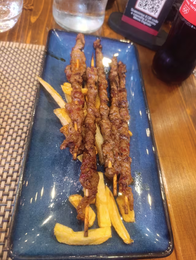 - Arrosticini qet alla brace - arrosticini mix serviti con patate fresche fritte