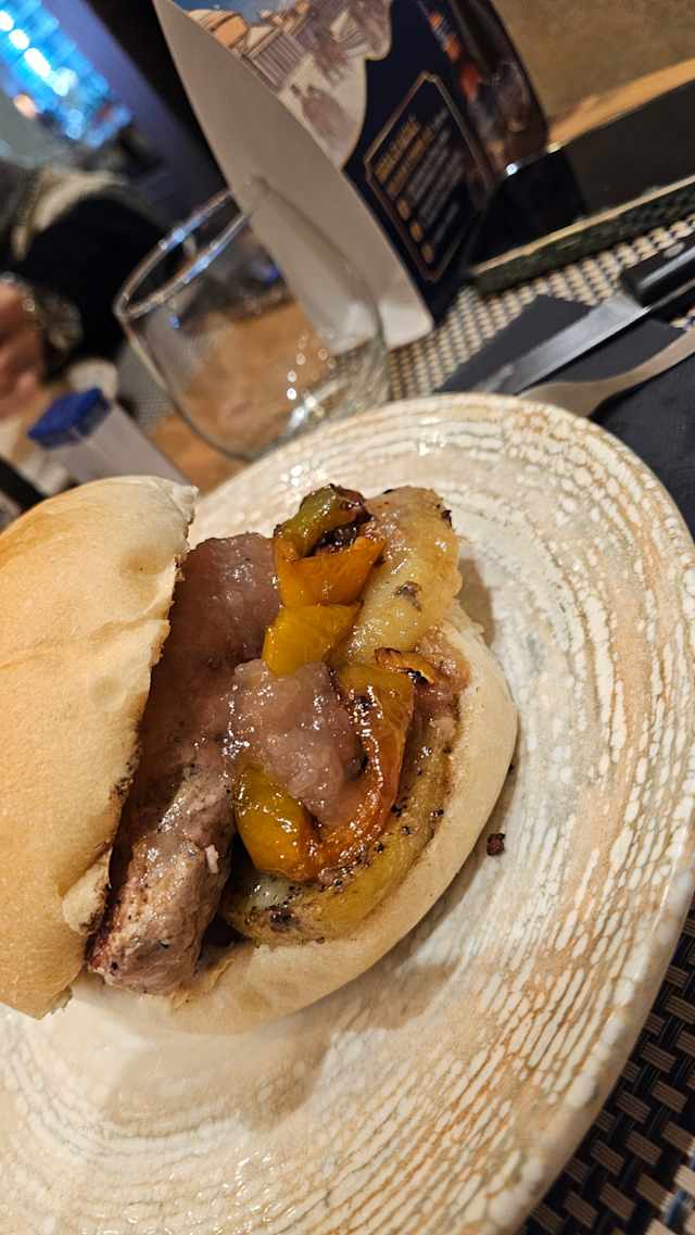 - Porchetta di ariccia, provola di agerola, insalata iceberg, maionese, patate fresche al forno, melanzane grigliate