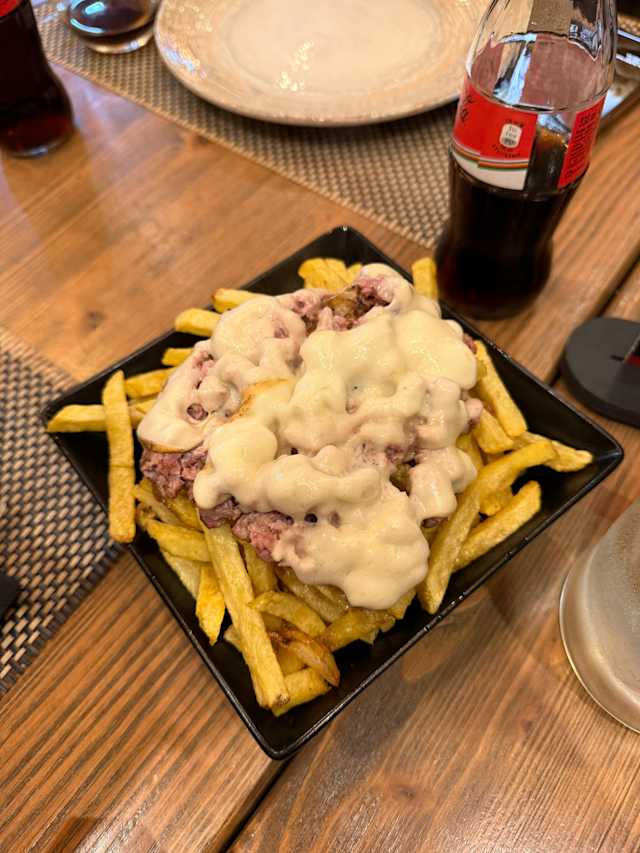 - Patate fresche fritte - patate fresche fritte con salsiccia di maialino nero casertano e provola di agerola
