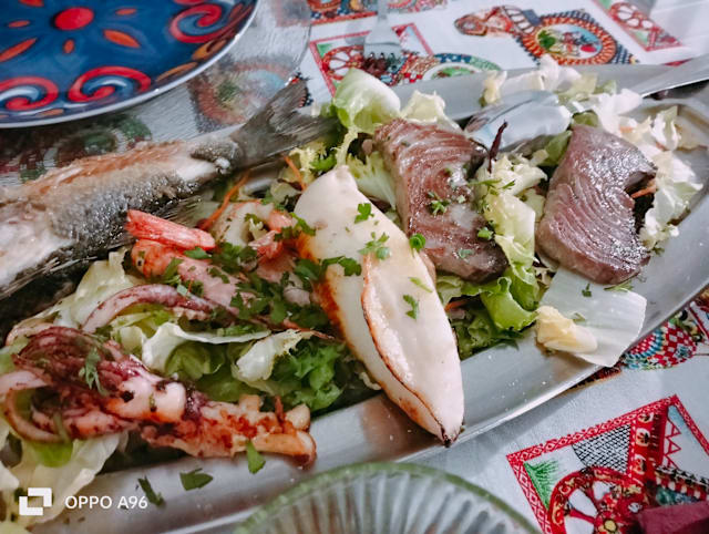 8/10Food was good, really liked grilled fish and mozzarella salad and pasta with shrimp. Portion was a bit small, so order more food. Also, tables only inside