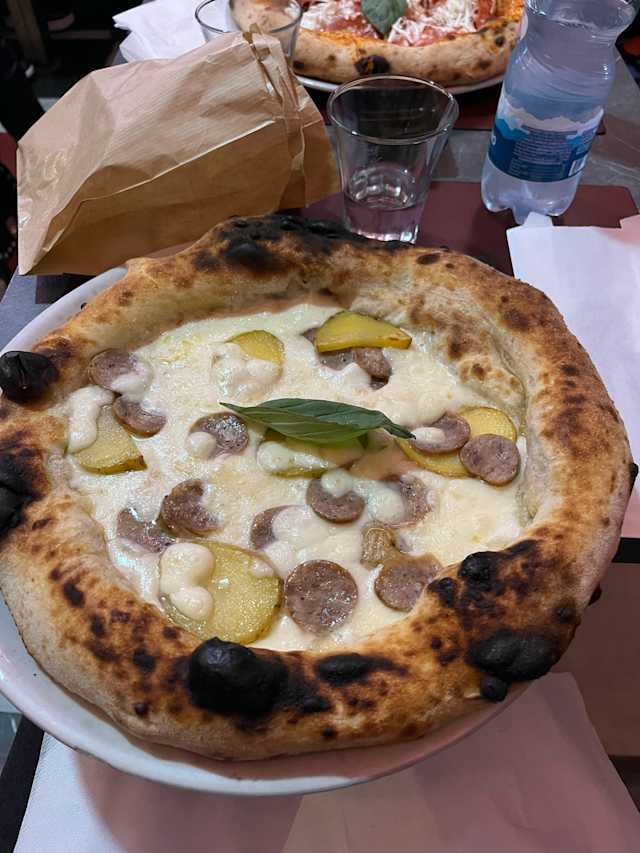 - Un morbido cornicione ripieno di ricotta e granella di pistacchio accoglie una armoniosa sinfonia di gusti e texture, dal fior di latte e provola affumicata campana, alla mortadella artigianale di morbello, arricchita con pomodorini gialli e granella di pistacchio