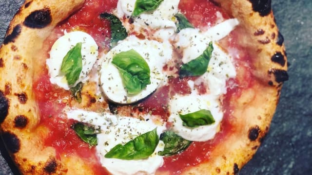 La base di pomodoro di san marzano e la bufala campana dop richiamano la semplicitå e l'eleganza dei sapori italiani