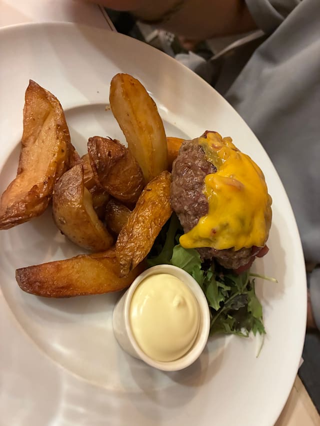 5.5/10The reception: By the chef: Disappointing. Even though we had a reservation, he didn't seem interested in greeting guests, just waved us to the next table at the entrance (no sign that the table was reserved) and disappeared immediately. The staff seemed more interested in their business and were friendly. The food was ok, the appetizer of salad and burrata was good, the main course could have been much better: The restaurant: It's a Finalborgo fast food with a high turnover of guests. The burger (served warm, not hot, as well as the grilled vegetables: cold) fries not available due to broken equipment. The burger was served without bun ...