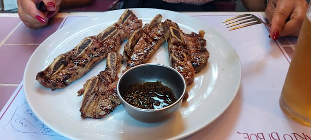 10/10I decided to take my two teens out to dinner and treat them to something different from pizza or hamburgers. Since the restaurant is specialized in meat we had steak (enterecote) and grilled ribs (asado argentino), with jacked potatoes. We also tried Uovo 60° which was a pleasant surprise: a slightly cooked egg on a bed of mashed potatoes with melted cheese in between. Panna cotta and a chocolate mousse for dessert. Everything was excellent. Best of all, the dishes we chose were gluten free, so no-one felt left out. Staff was very friendly and helpful. Will go again.