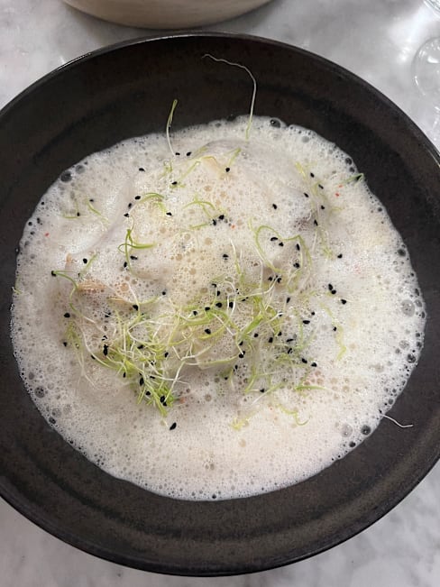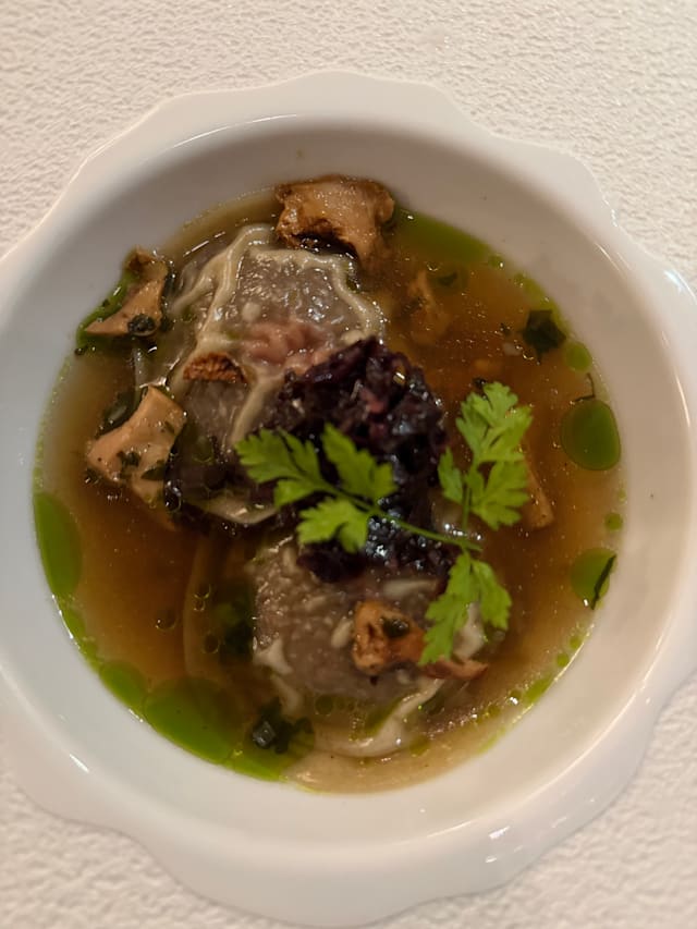 3.5/10Dorade au Yuzu - The Yuzu only has a sour taste and the aroma is not utilized at all. The taste of Dorade itself was buried under the other ingredients and couldn't n be tasted. Filet de bœuf, sauce soja-gingembre - Too much soy sauce taste = Too much salt. It was clearly too salty compared to the cod my companion orderd. I can't understand where the chef's idea of salt content is based.