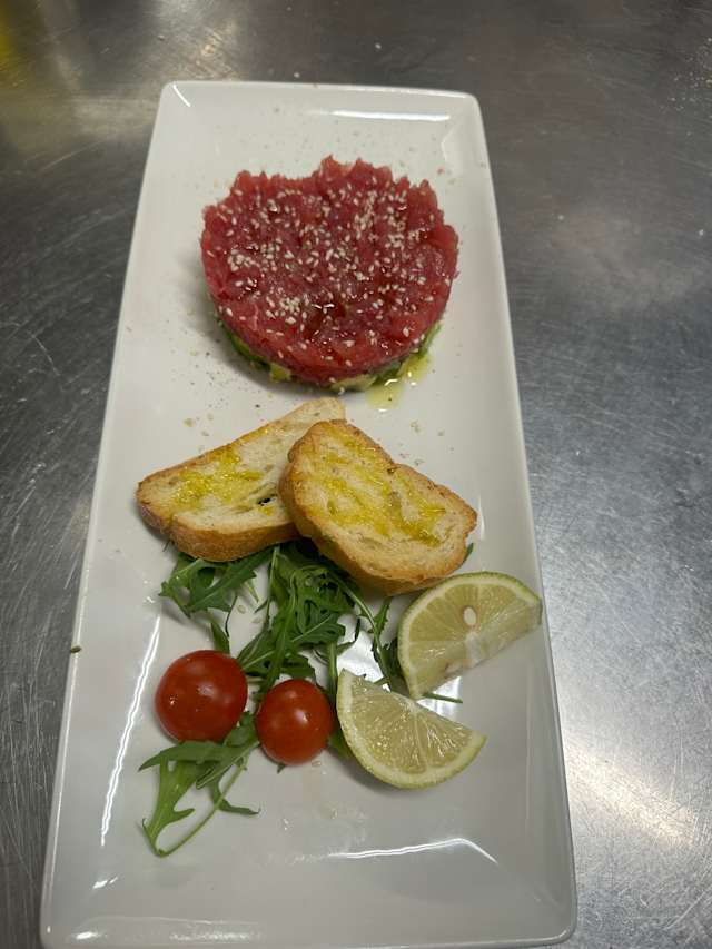 - Tartare Quattro Stagioni (carne cruda, tuorlo, capperi, peperoni, cetriolini, tabasco)