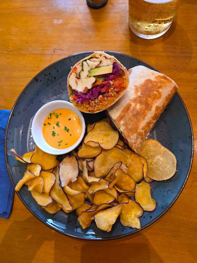 8/10The restaurant is nice, the servers are very friendly and helpful. Regarding the food, i ate a burger, the simple burger and it was just okay. Kinda bland and lacking sauce. The grilled halloumi as very good tho, and the chips that came with the burger were also good.