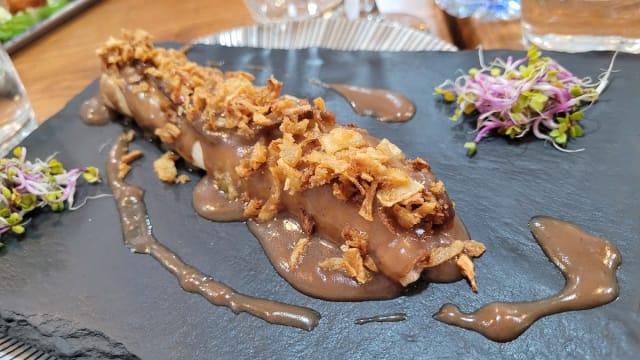 8.5/10The service and food were excellent. On arriving I was disappointed to see that I was the only person in the restaurant. However, I really enjoyed my meal and the service was great. To start I had the garlic prawns which were sweet and tasty. For my main course I had the cod with creamed cauliflower. The fish was really good and cooked beautifully and the cauliflower accompaniment and juicy prawn made for a great meal.