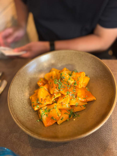 8.5/10Wait staff was very friendly. Food was reasonable for price. Appetizers: rice ball: good; squash flower with anchovies was overbattered and greasy; prosciutto and figs: delicious. Mains: Tripe was yum; cacio pepe was okay; ravioli was scrumptious.
