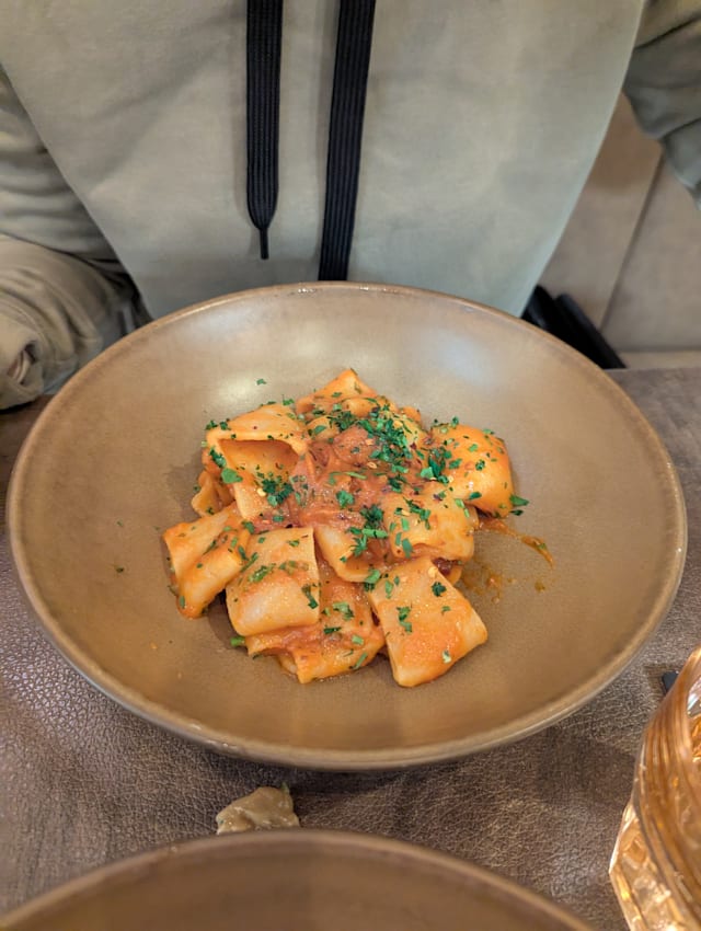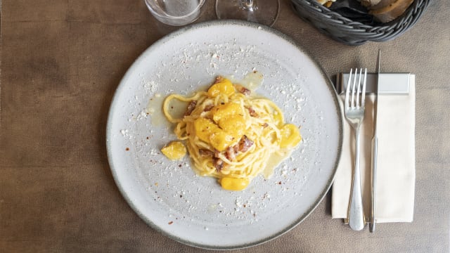 9.5/10We had a marvellous family meal here! The restaurant is small in a lovely intimate setting with modern decor. The owner could not. Have been more welcoming and our waitress was excellent and so knowledgeable and helpful about our menu choices,The food was delicious.We had stuffed zucchini flowers and cheese with jams and honey as appetisers which were so good we ordered more! We followed our waitresses recommendations for pasta specials and had simply the most delicious pasta alla gricia with caramelised tomatoes which had a little spicy twist. For dessert We had the special lemon marscapone cream with lemon curd/ syrup like topping and tirimisiu both of which were excellent. The food was reasonably priced for the centre of Rome and beautifully presented.The house wine was extremely reasonably priced and with a choice of red white or sparkling.The Wine list had a decent variety of other choices.We had a fantastic evening and look forward to eating here again when next in Rome.