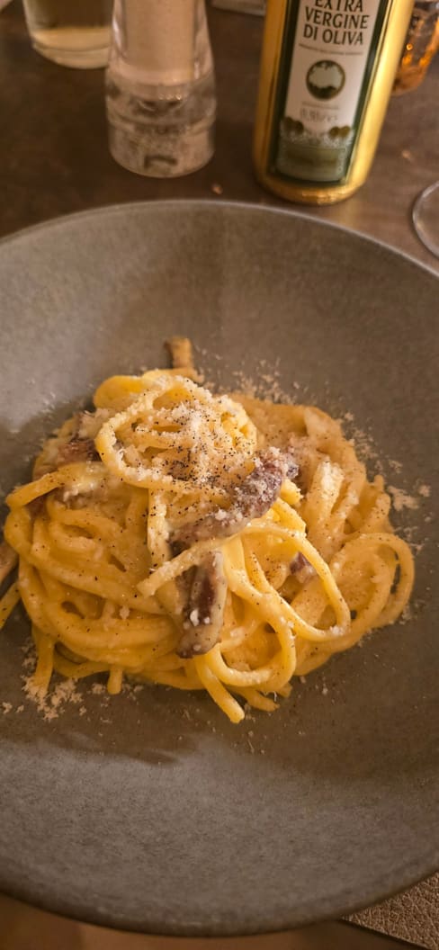 10/10+3We have been in Rome for 5 days and we have eaten dinner here 3 times already. That says it all. The food and service is excellent. I've tried 3 different entrees while my wife loves and has ordered the same pasta dish Tonnarelli Aglio Olio e Peperoncino. Order whatever they recommend. Beatrice, Lorenzo and Massimo are warm and welcoming. We'll undoubtedly be returning again before we leave.