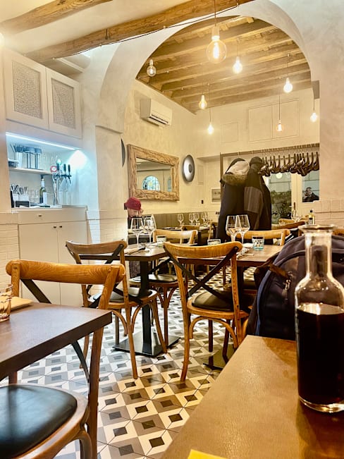 9.5/10We had a marvellous family meal here! The restaurant is small in a lovely intimate setting with modern decor. The owner could not. Have been more welcoming and our waitress was excellent and so knowledgeable and helpful about our menu choices,The food was delicious.We had stuffed zucchini flowers and cheese with jams and honey as appetisers which were so good we ordered more! We followed our waitresses recommendations for pasta specials and had simply the most delicious pasta alla gricia with caramelised tomatoes which had a little spicy twist. For dessert We had the special lemon marscapone cream with lemon curd/ syrup like topping and tirimisiu both of which were excellent. The food was reasonably priced for the centre of Rome and beautifully presented.The house wine was extremely reasonably priced and with a choice of red white or sparkling.The Wine list had a decent variety of other choices.We had a fantastic evening and look forward to eating here again when next in Rome.