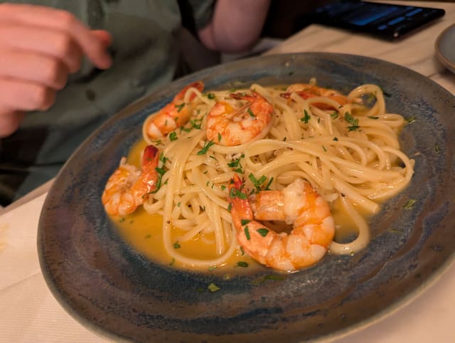 9/10The olive bread and seafood risotto were both delicious. My husband had the shrimp linguine and it also was very good. Our wine was excellent. Only one small inconvenience, there was only one host/server for the whole restaurant so service was not fast. We were able to enjoy an excellent dinner.