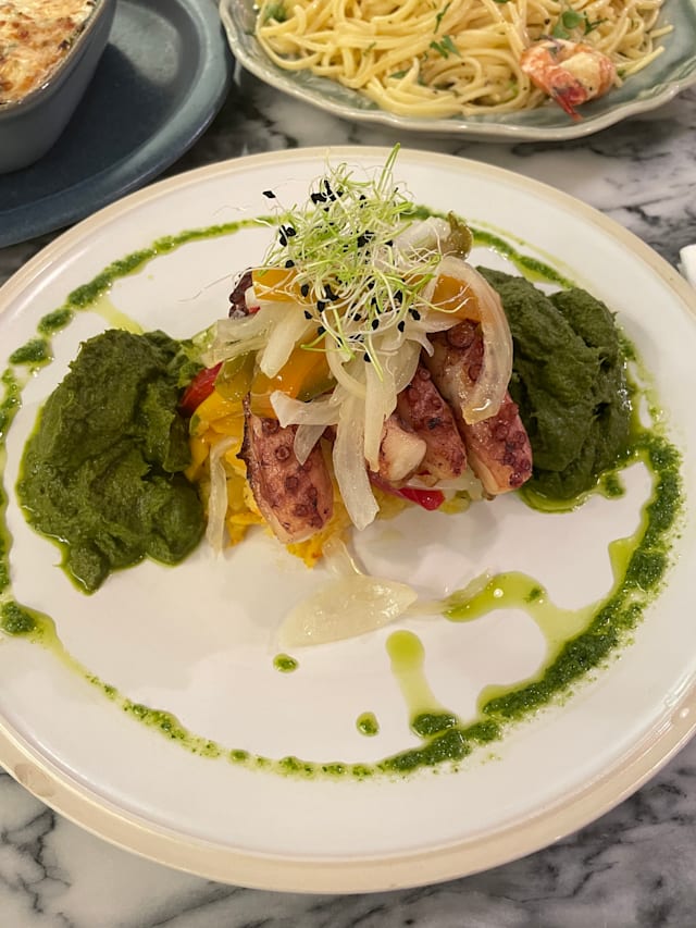 9/10Warm welcome and wonderful food. the octopus was cooked perfectly. A noisy table with their phones on loud speakers impacted our enjoyment.