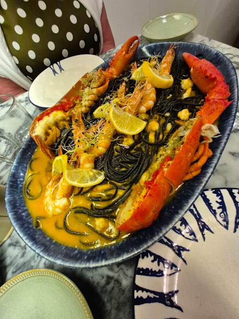10/10I happened to walk past this little restaurant while wandering around Lisbon. It’s off the main street and is a hidden gem. They were not yet open for dinner but the door was open and they were prepping for dinner. I was able to make a reservation online for dinner. There were only about 8 tables and 1 server, but he was welcoming and happy to help us pick out a bottle of wine and select entrees. We started with a lightly seared tuna appetizer with pickled onions and tomatoes that was super flavorful. I then enjoyed the sea bream and other guests had the seafood paella and seafood lasagna. Everything was delicious.