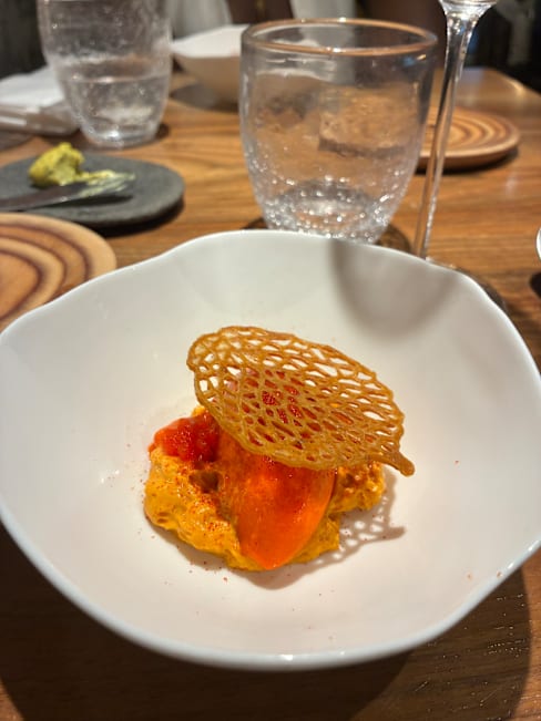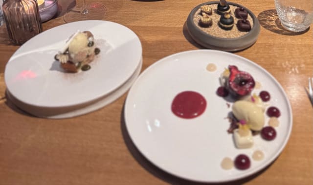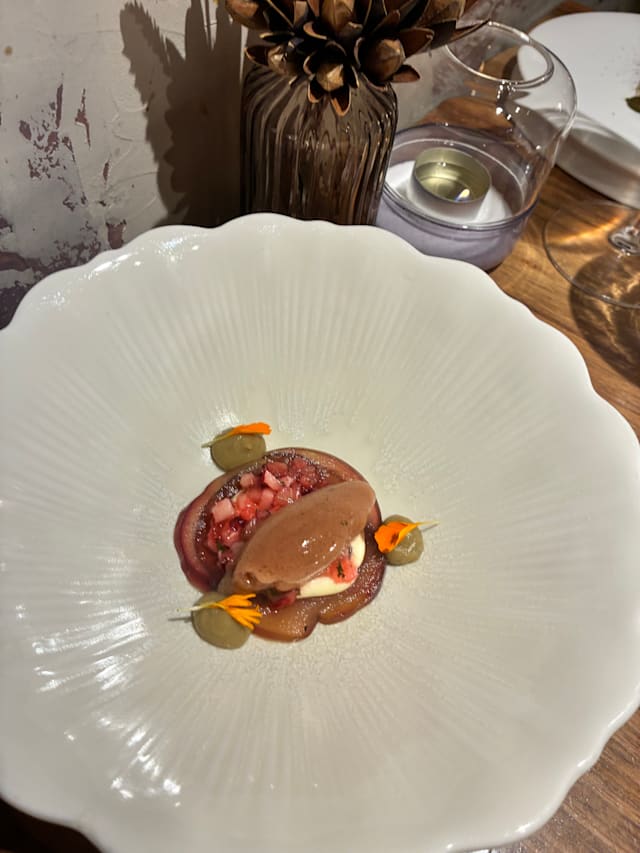 8/10Food was fantastic. I would highly recommend against the wine pairing. The glasses are small and one of our pours was the bottom of the bottle and we received a half pour… but still paid for a full pour. For the price, a new bottle absolutely should have been opened. It’s a shame that a €600 euro dinner could be tainted by a half a glass of wine. The food really is the highlight.