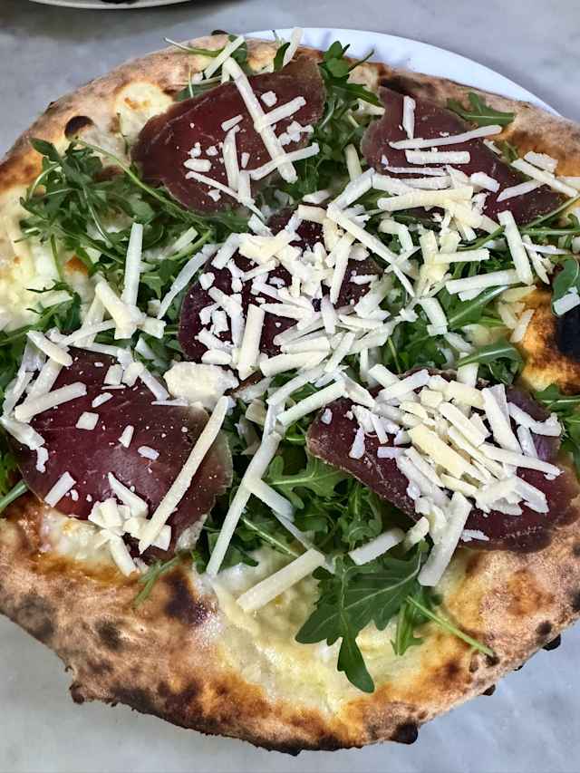 - Rucola, saimone, mozzarella di bufala, cipolla, parmigiano
