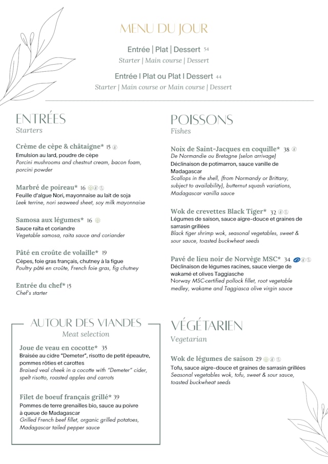 8.5/10Very good business lunch. Excellent welcome from an attentive management team but the rest of the staff is variable. We had quite a long wait for our main course so specify if you are in a hurry. Also, I asked if the sole was a filet or on the bone. The response was a fillet but it was actually on the bone. It was delicious though. The café gourmand is also tasty and well presented