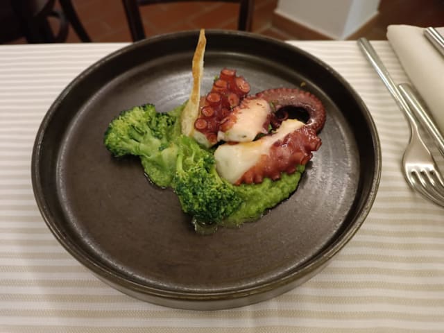 10/10We dined on a gorgeous terrace overlooking the beautiful view; the menu is reassuringly short and ingredients quality is very good; we were four and we tried mainly fish dishes, all were excellent. Staff is kind and friendly. I would recommend this place.