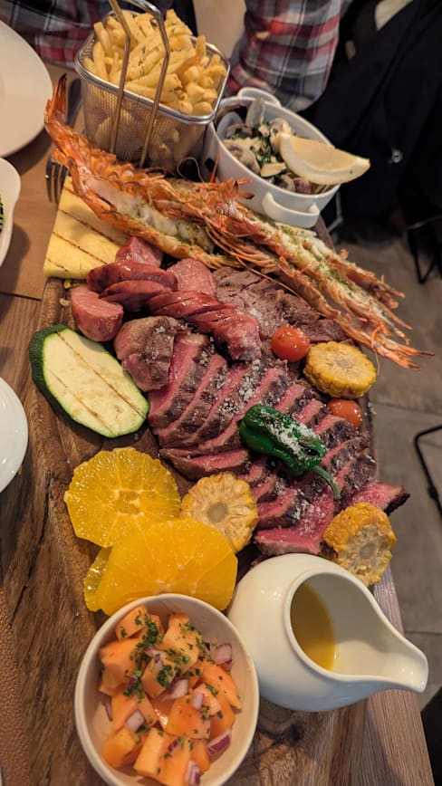 9.5/10Staying in a local hotel and a spur of the moment decision to go out and eat. This restaurant was about 15 mins walk from the hotel. As we had booked online at short notice I don’t think that had got as far as front of house staff but a table was made up for us very quickly. Shared a starter of stuffed mushrooms - very tasty. Not being mean but it turned out that it would have been very generous for one. Then one of the shared meat dishes. Very nicely cooked with an enjoyable salad and nice fries. Shared a pudding as well - running out of space for more. Nice ambience, good service. Good value