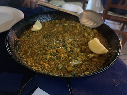 3.5/10We reserved a table at 21:00 but did’t receive one until 30 minutes later. They had obviously overbooked. The waitors had Way to many tables to serve, therefore The service wasn’t good either. We had to wait about 20 minutes to receive menus. After we ordered the food, we waited over an hour to receive the paella. The paella was bland, and texture was Way off. There was no soccorat at all, which was quite dissapointing. We also did’t have any waitors over asking if everything was Ok, or if we needed anything more. The toilet was dirty, lacked lightning and door handles. The lock also didn’t work in The men’s restroom. Seemed like a trap for tourists. Would not recommend at all!