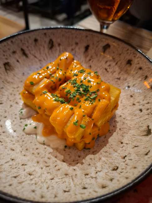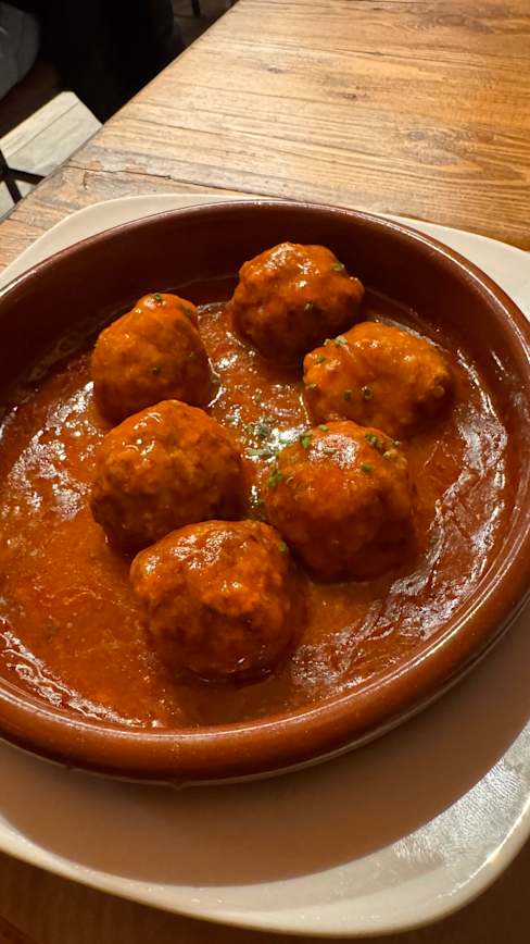 9/10First time trying the potato brava tapas, it was so good. The black paella is €22 for two people, the portion is very appropriate. Good value.