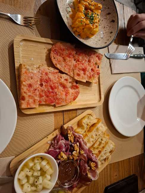8.5/10Very nice place situating in original historical building, close to La Rambla and market. Tapas was great - potatos with souce and shrims crocets. very good Aperol Spritz. Paella with sea food was tasty but should be containing more sea food. Spagetti with sea food was good.