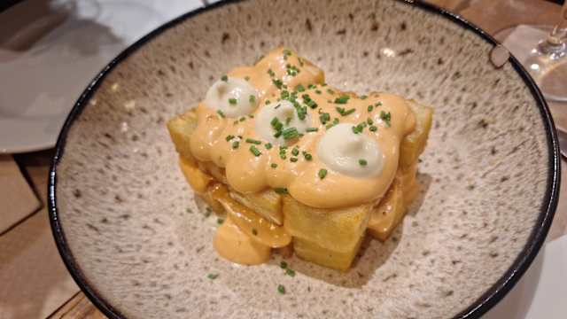 - Deliciosas patatas cortadas en cubos y fritas, servidas con nuestra salsa