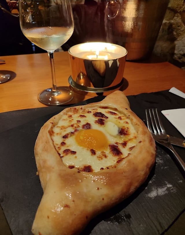 Barqueta de massa cruixent farcida de sulguni, mantega i rovell d'ou poc fet.