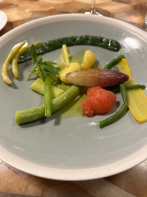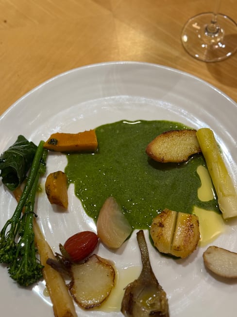 A very nice memorable set of moments. The second part of moments seemed a bit repetitive as in a vegetable/s with sauce on a plate. They were still very tasty. I would like to see a bit more of a variety in the presentation that includes different plates and maybe a different way of presenting the food to add more drama to it. Overall, it was a nice dinner and i would go back for another meal. Great work and congratulations to the restaurant for being fully vegetarian. We chose not to do wine pairing but The wine we had and the sommelier were impressive not in quantity of wines offered but in the actual selection of the wines on offer. They were excellent bottles that went amazingly with our food.