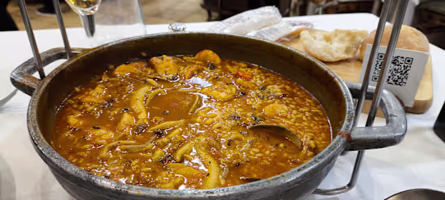 In a lovely area of Alicante this feels like a really honest restaurant. Quality service and very traditional food to match. The Sailors set menu that I had was lovely. Mixed fried fish, a salad of cured and pickled fish with baked bread, all followed by a blacked metal dish straight from the oven filled with a rustic type of seafood paella. Honest and great value.