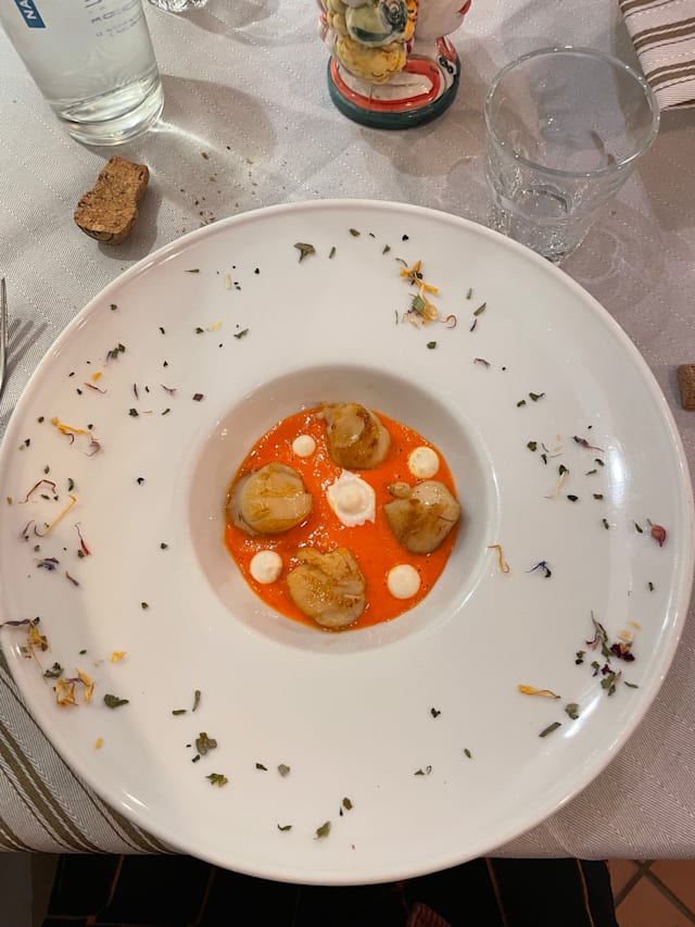 9.5/10Excellent fish restaurant. Scallops were plump, juicy and perfectly cooked. Lots of different fish on the menu (we also tried a prawn tartare, then monkfish cooked in tomatoes and caper berries and beautifully cooked mackerel on a bed of wilted greens). Excellent white wine recommendation. Very quiet restaurant a bit away from the centre. Would definitely come back.