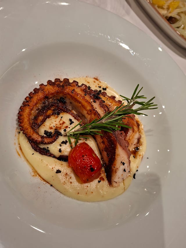 9.5/10Really great food and a fabulous table outside away from the crowds with a beautiful view over the canal, boats and flowers of Pescheira. Highly recommend. Amazing tiramisu!
