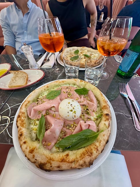 10/10Had such a nice lunch with friends today at this Italian place. The food was seriously delicious—the pizza with burrata, mortadella, and pistachios was amazing, and the spritzes hit just right. The staff were super friendly, and the whole vibe was relaxed but really stylish. Just a perfect way to spend the afternoon.