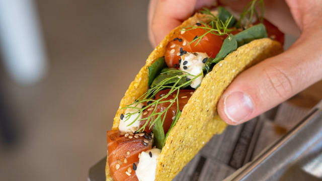 10/10Their taster menu on a Sunday never disappoints. Just the right portions of well balanced and seasoned food. All dishes are nicely presented and food allergies noted. Lovely terrace and great that you can see the chef cooking.