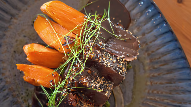 - Atum braseado, sementes de sésamo, molho teriaki