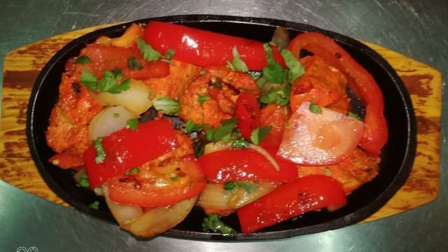 Poulet tikka grille avec oignons, tomate, poivrons vert/rouge