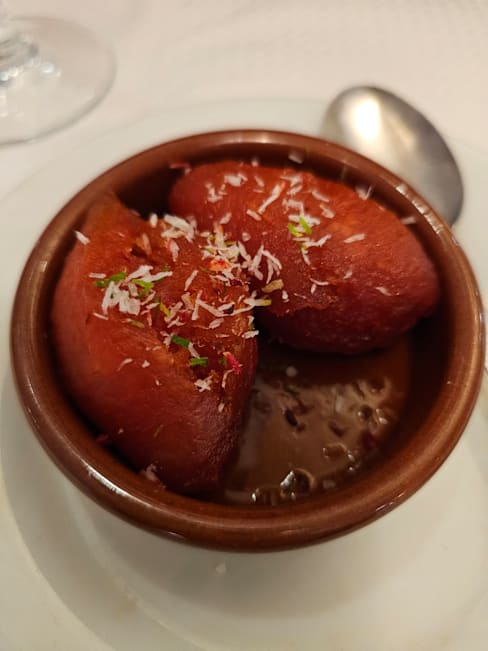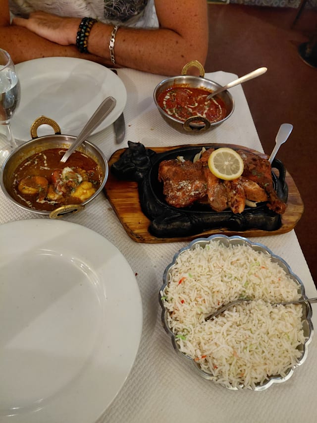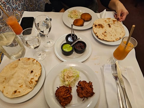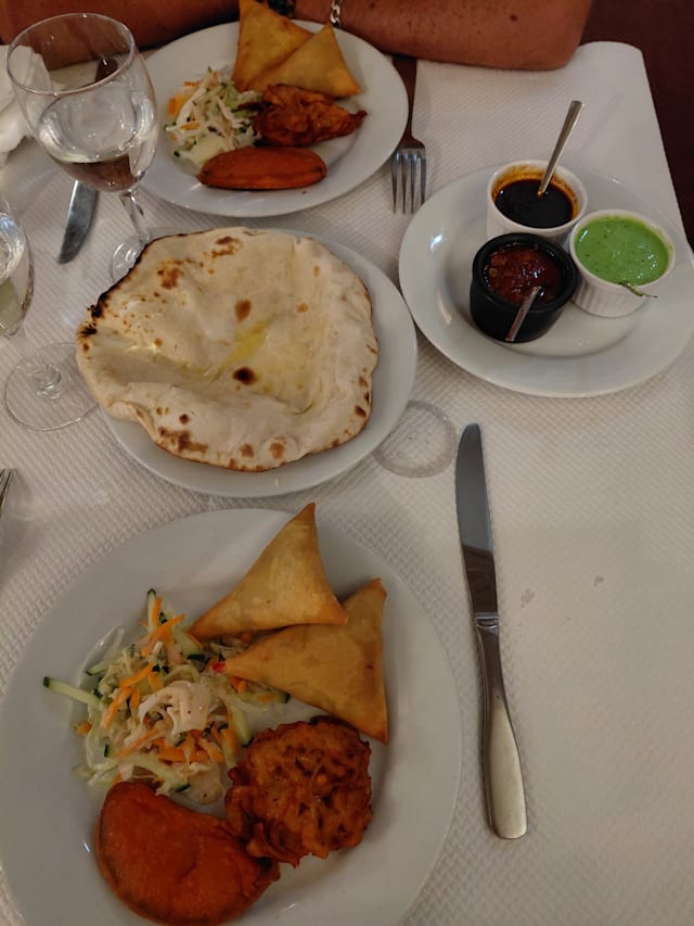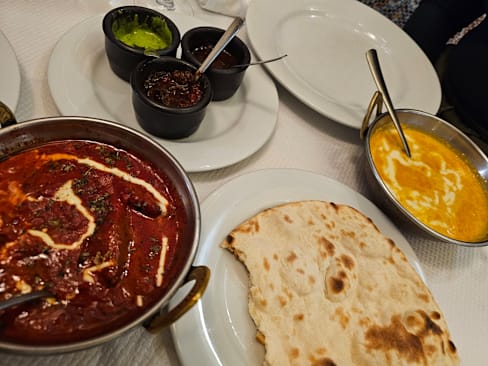 6.5/10Went for the mixed appetiser (samosa etc), and a naan. All good except one of the sauces were bland and the chicken tikka had little flavor. Mains were fish vindaloo and chicken brochette tandoori. Vindaloo sauce was very food, but fish was very small portion for the price. Half of it was potato. Chicken tandoori was bland (same as the starter) and came with a bland sauce (never had it with a sauce since, if done as expected, no sauce is needed). Not going back and trying a similar priced Indian somewhere else