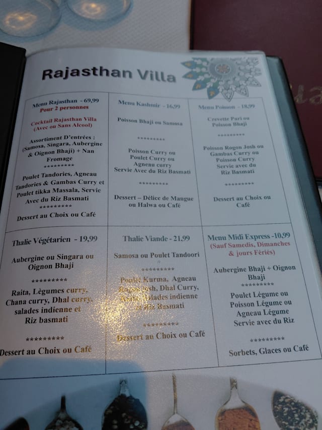 9/10The restaurant is charming and pretty, The prices are moderate to expensive, but the food is fresh and super delicious 1 think that the service was a bit s!ow as there was only one young sweet waitress (and from time to time a young gentleman helped her). The cheese nan is the best followed by the garlic one. If you like mango try the lassi drink. The three sauces you get with the nan are tamarind which is sweetish and yummy, the mint chutney is so tasty and then there is a hot sauce for those who like that! The rice with veg is great too & the beef samosas are scrumptious. The vegetalble briyani is divine, the tandoori chicken filets are amazing and the tandoori assortment is so tasty ( chicken pieces, chicken fillets, gamba and lamb ). Highly recommended.